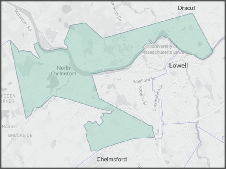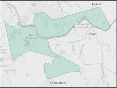 Consists of Precincts 1, 2, 3A, 5B, and 6, of the town of Chelmsford, and Ward 1 Precincts 1, 2, 3, 4, Ward 2, and Ward 4 Precinct 4, of the city of Lowell